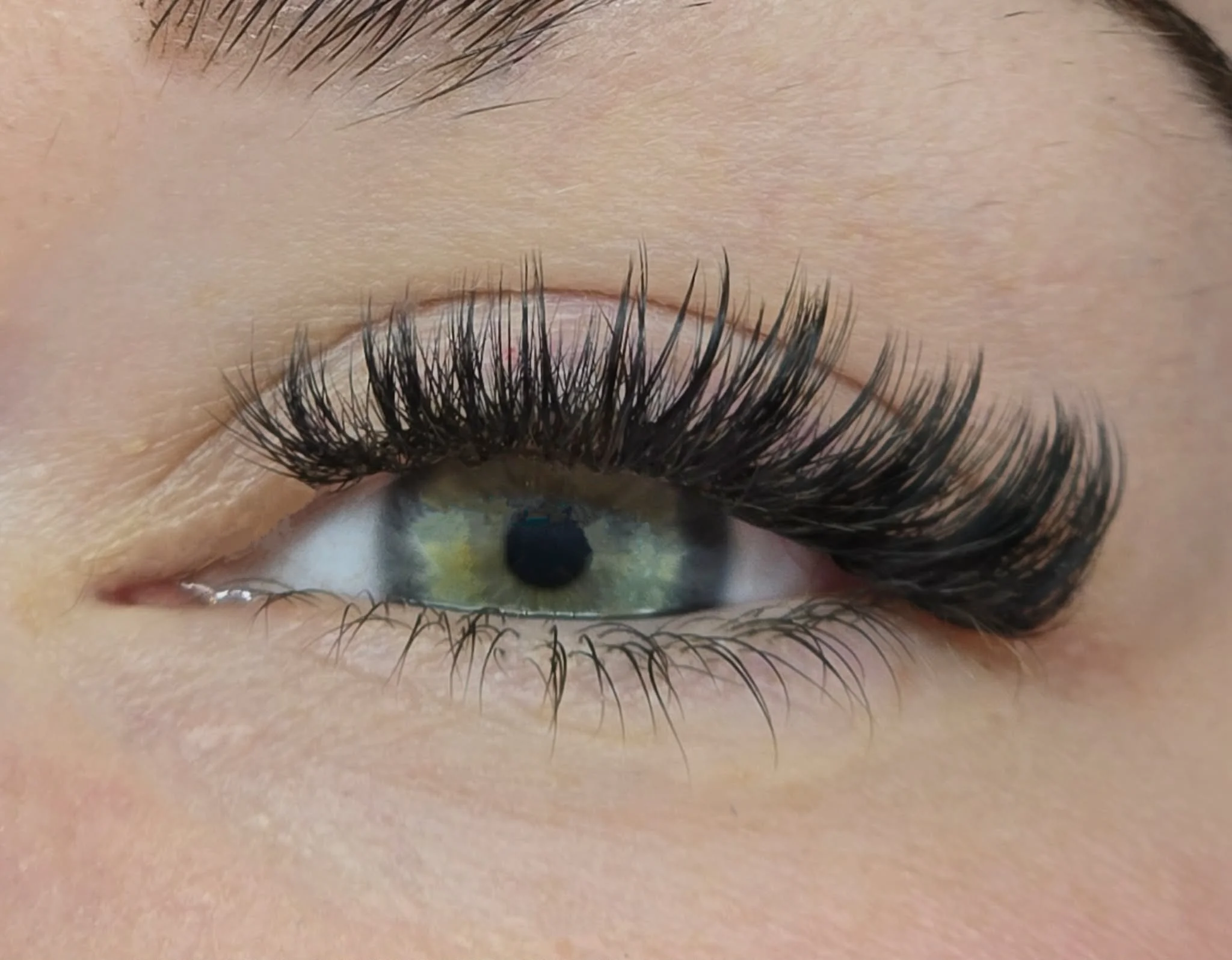 Volume lashes are when multiple ultra fine extensions are applied and fanned out onto 1 natural lash.